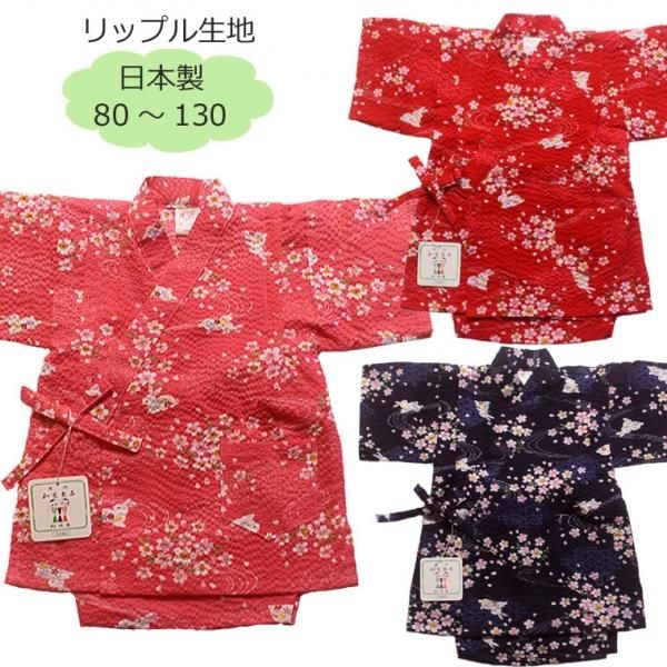 リップル生地の日本製子供甚平です。「リップル」・・・生地にしぼ(凸凹)をつけて作られていて、さらりとした肌触りでお肌にはりつきにくく軽くて薄手の生地です。