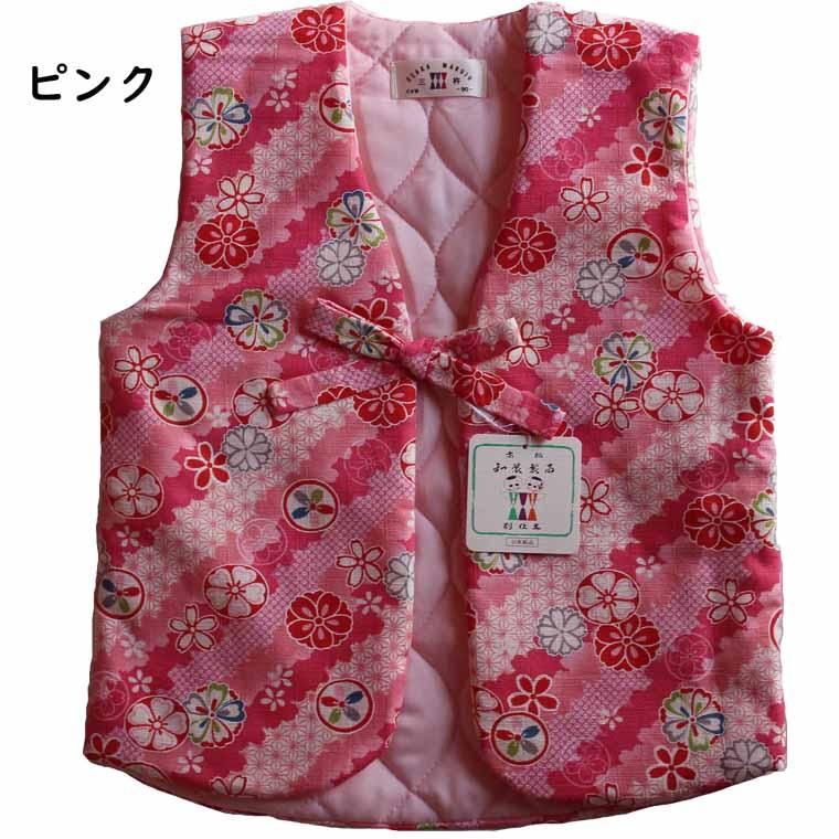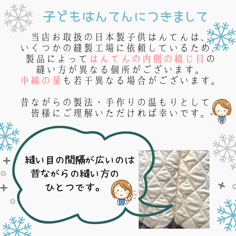 前側で紐を結んで着用しますので多少の調整ができます。中綿は比較的薄手の仕様です。
